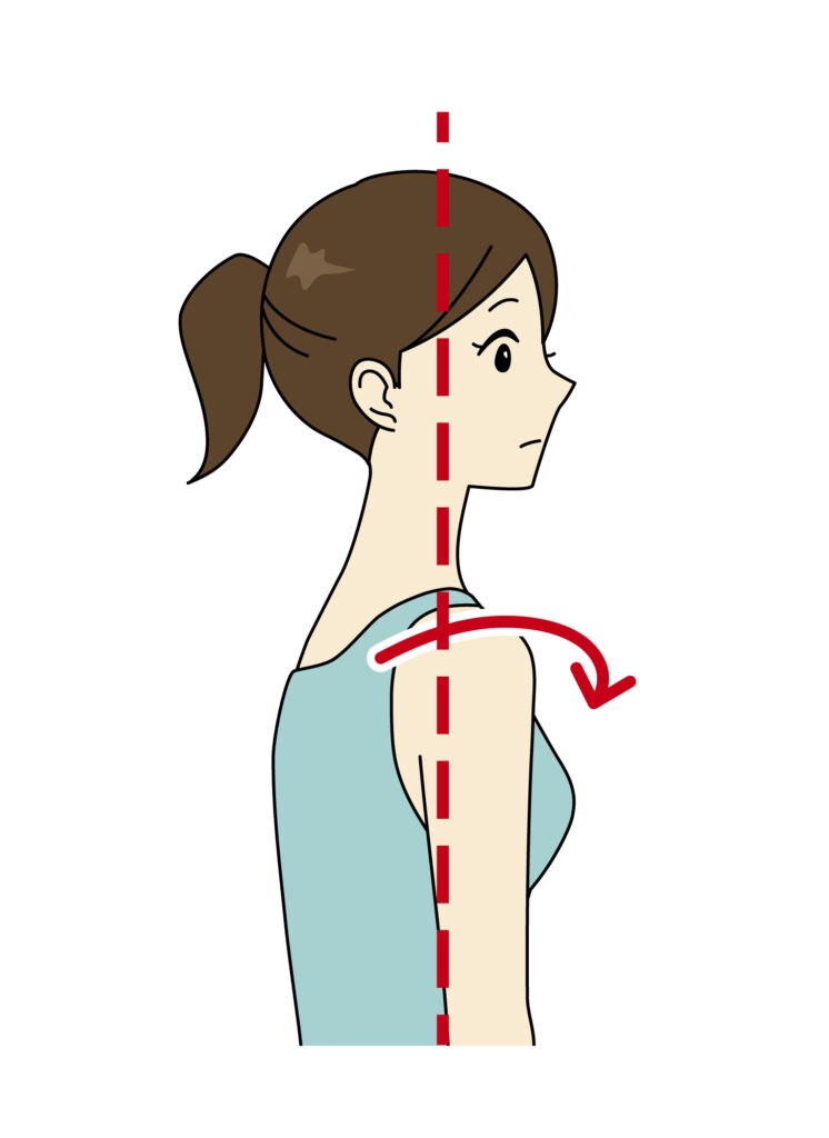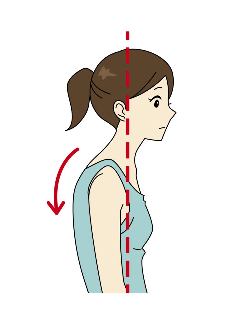 猫背になることで「顔が前に出る」「背中が丸くなる」「巻き肩になる」など、不良姿勢につながりやすくなります。
