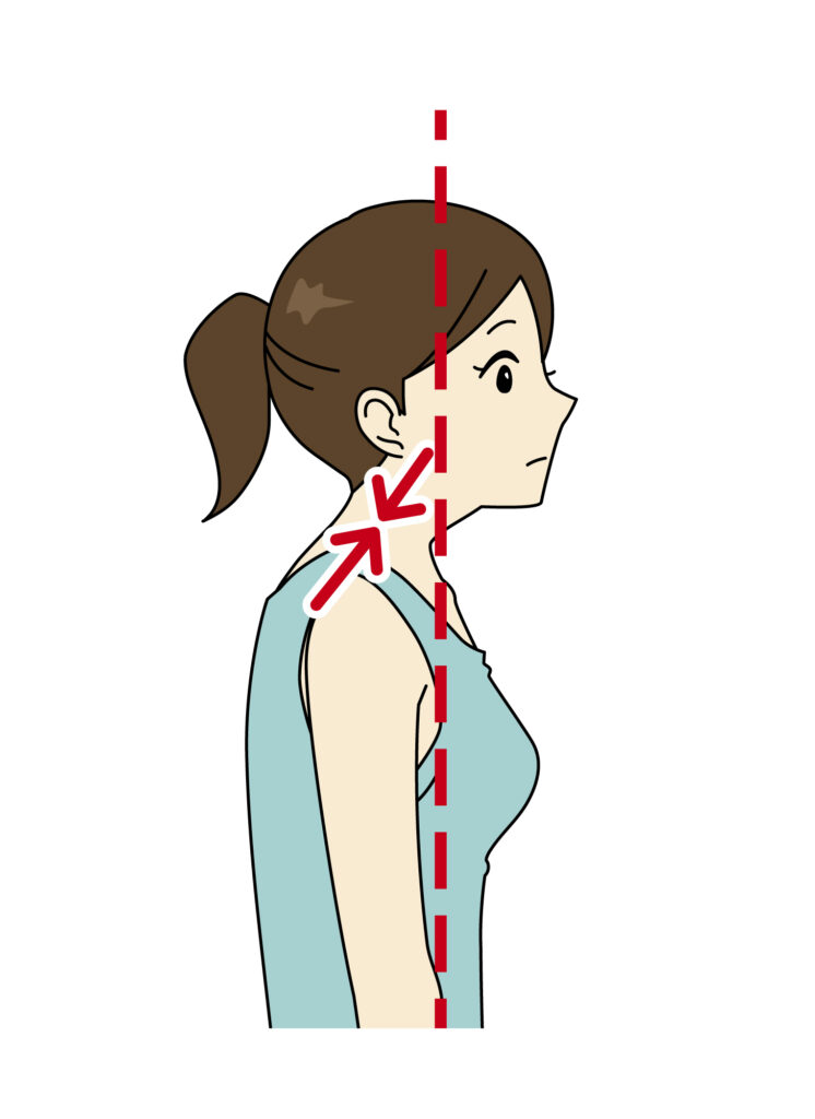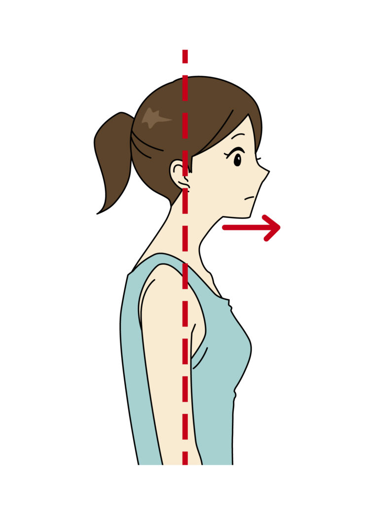 車の運転中や椅子に座っている際に背中よりも頭が前に出てしまう方は要注意です。