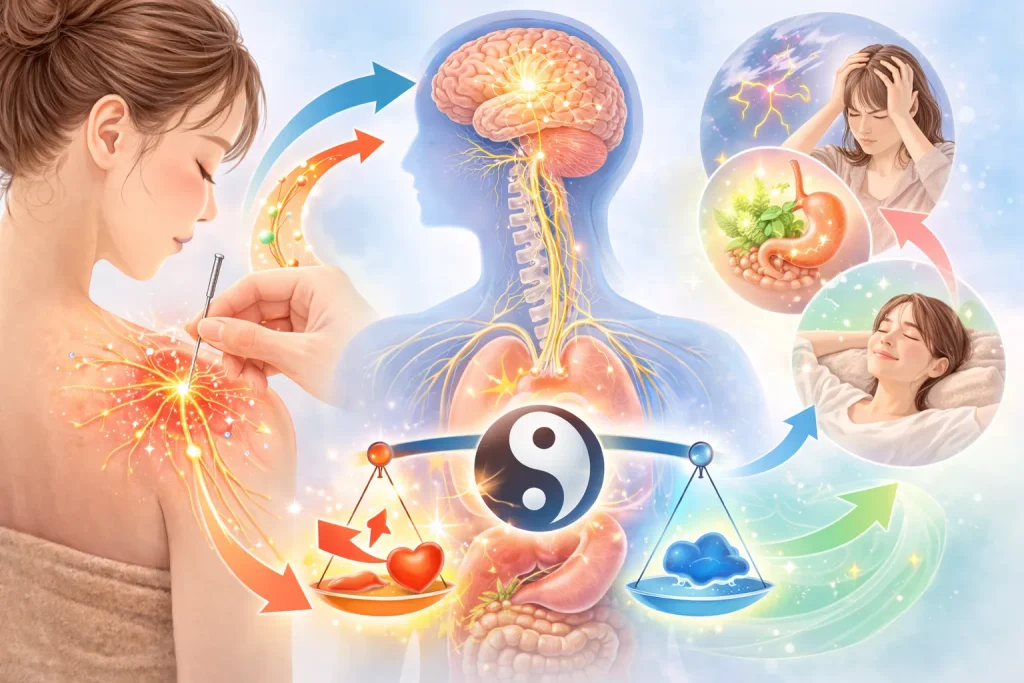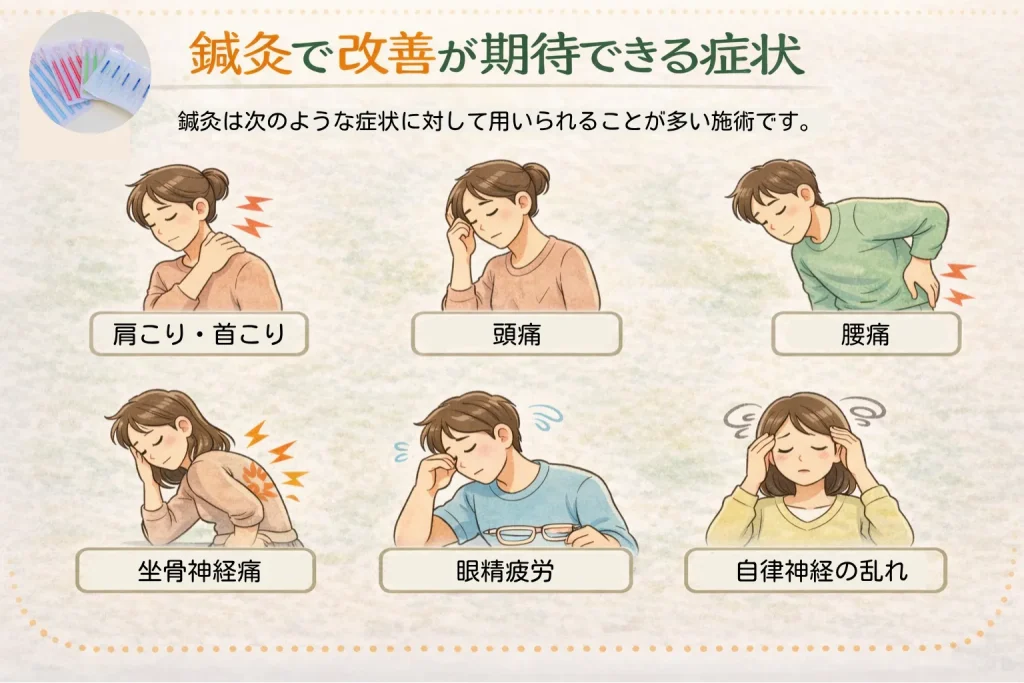 髪の毛ほどの細さの鍼を症状にあわせて全身にあるツボに刺激をして痛みやコリなどの不調にアプローチします。マッサージや整体でなかなかよくならない慢性的な症状におすすめです。
