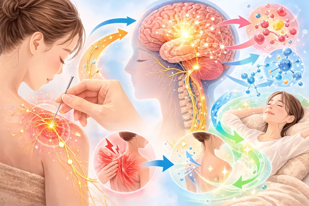 筋肉がリラックスできるように副交感神経が優位になるような刺激をいれていきます。