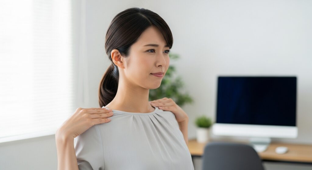 循環が低下することで疲労物質の排出が滞り、首肩周辺のだるさや重だるさにつながる場合があります。