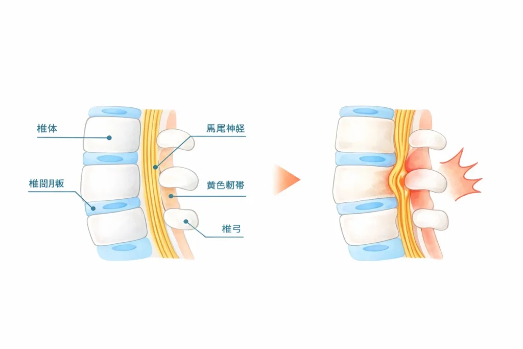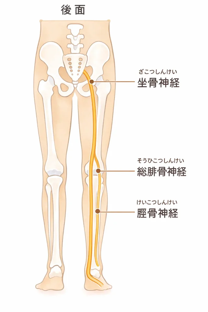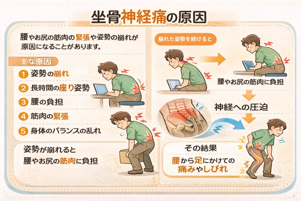 坐骨神経が圧迫されることで神経伝達が鈍り、